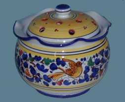 Fioriera o porta-spezie in ceramica di Deruta. Questi oggetti, completamente dipinti a mano, sono realizzati artigianalmente nel rispetto della pił antica tradizione ceramista. La particolare lavorazione, rende questi articoli utilizzabili per alimenti.
